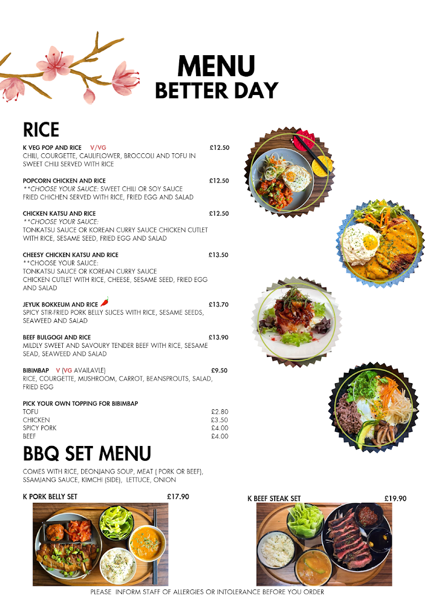 BBQ SET MENU COMES WITH RICE, DEONJANG SOUP, MEAT (PORK OR BEEF), SSAMJANG SAUCE, KIMCHI (SIDE), LETTUCE, ONION